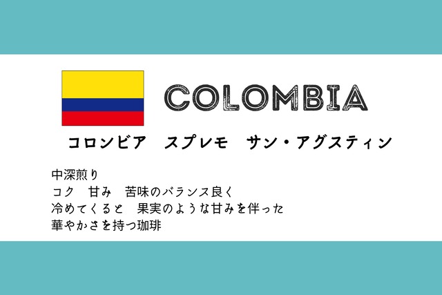 ※コーヒー豆は挽くことも可能でございます。 その場合は備考欄に抽出方法をご記入いただきますようお願いいたします。 産地:コロンビア ウィラ県 標高:1800m 品種:ティピカ カトゥーラ 精製処理:ウォッシュド 高品質珈琲の産地として知られるコロンビア南部ウィラ県 ウィラ県は標高が高く 昔ながらの栽培方法を守っている伝統的な農家が多く存在します